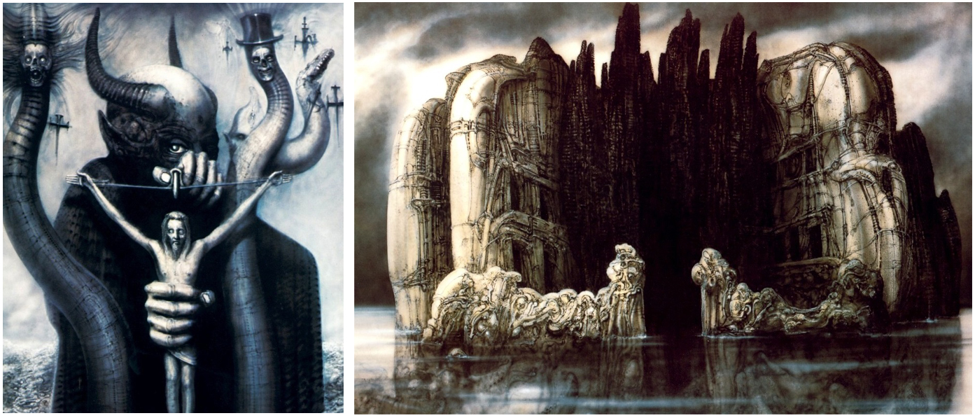 Famous for biomechanical vistas and surrealist sexual nightmares, I became familiar – like many others – via his iconic design of the alien creature from Ridley Scott’s 1979 film. It’s safe to say that the whole mythos, of which I’m an enormous fan, would never have been so powerful without his vision.